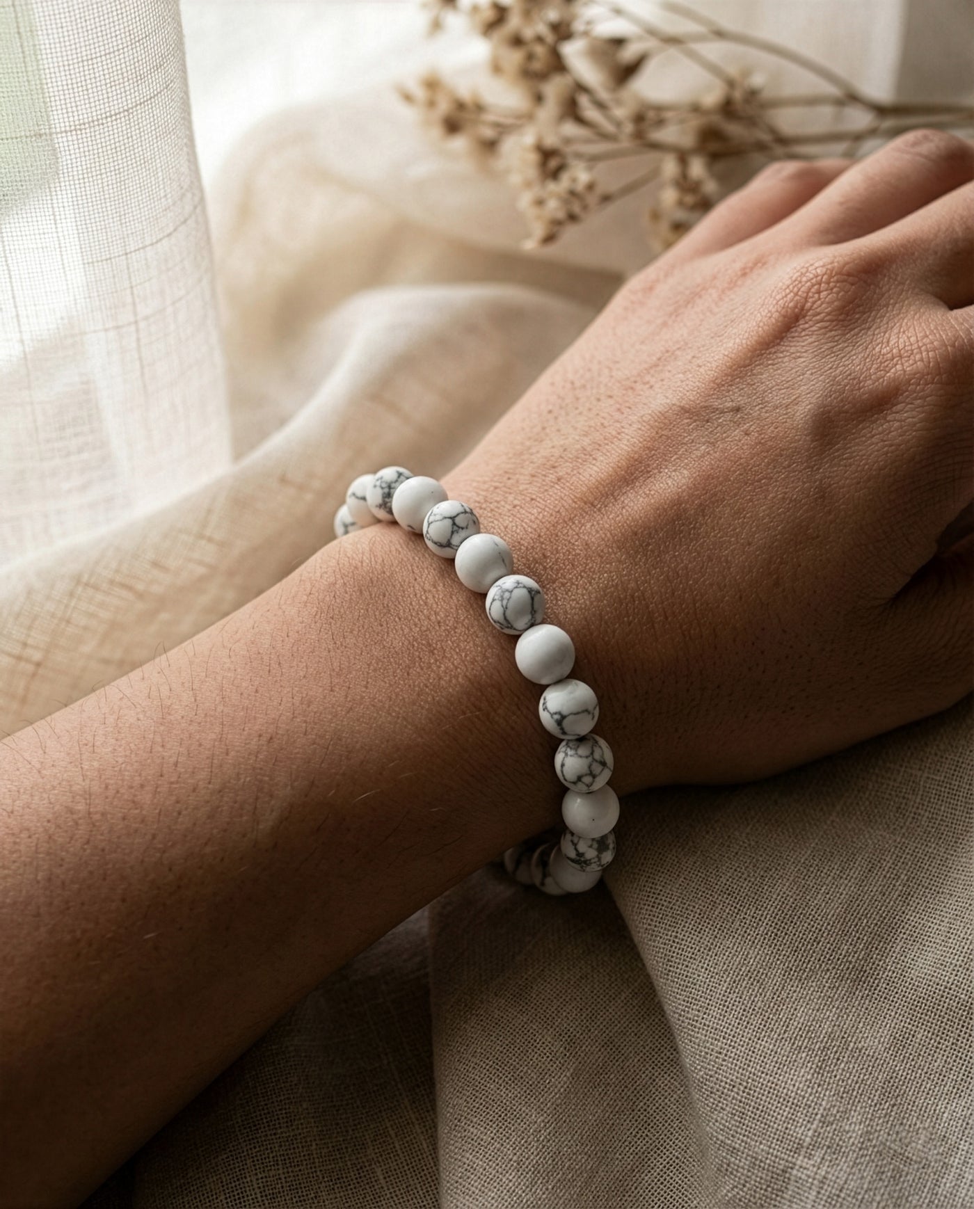 Improved Sleep: Placing Howlite under your pillow or near your bed can help combat insomnia by calming an overactive mind and promoting restful sleep. It is believed to enhance the quality of sleep and encourage pleasant dreams.