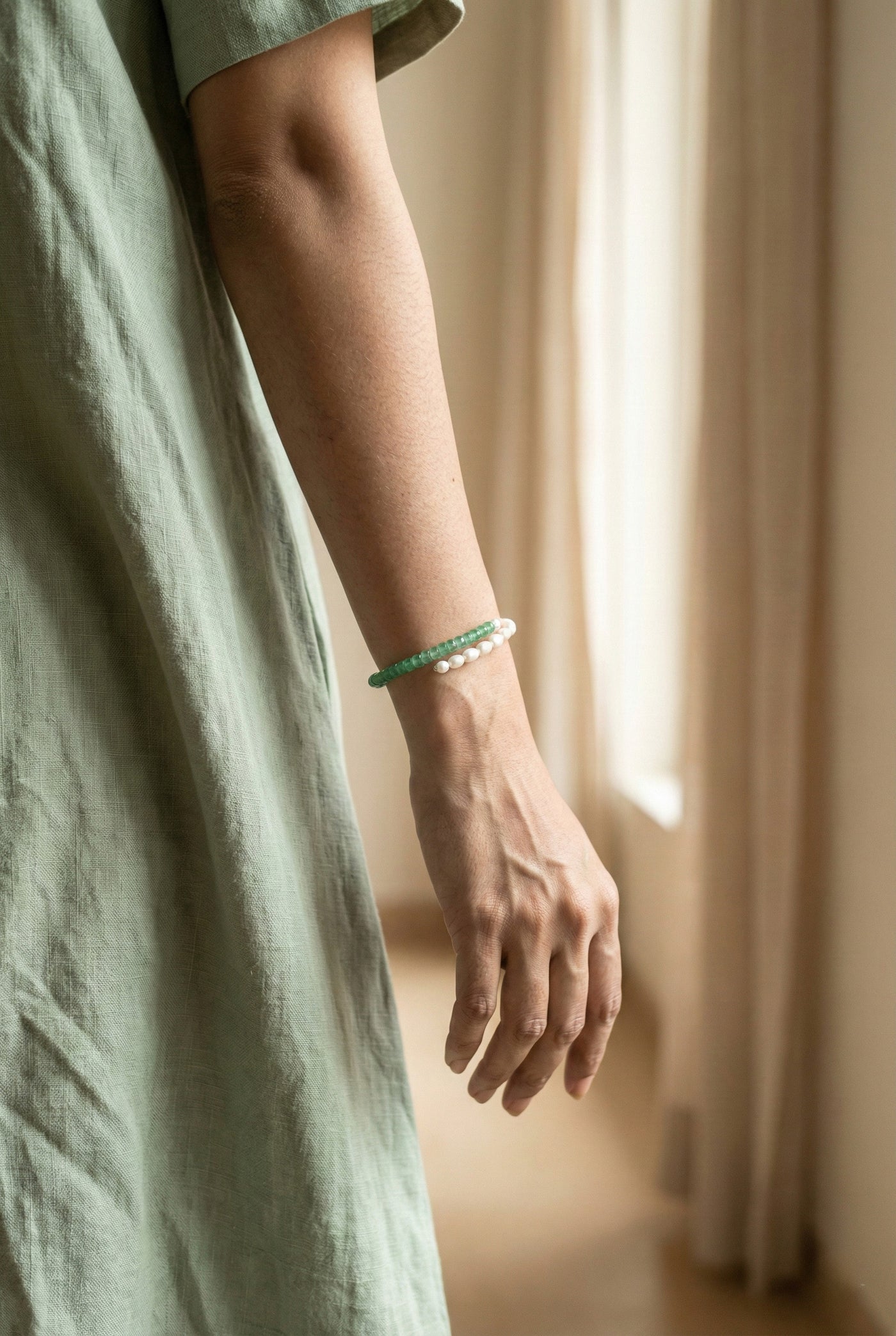 Korean Green Aventurine and Pearl Bracelet: The Meadow
